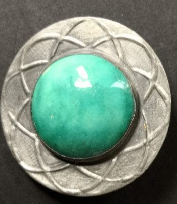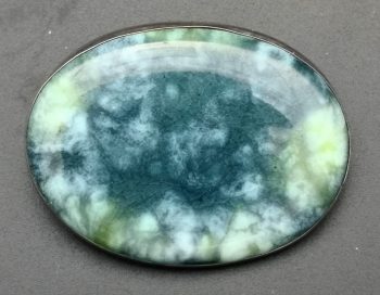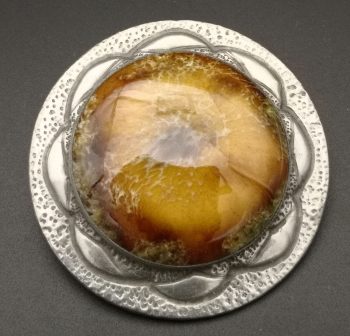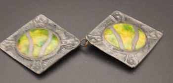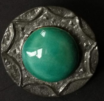 Ruskin pottery was founded in 1889 by William Howson Taylor who named it after the great writer and artist John Ruskin. Ruskin pots are renowned for their wonderful and innovative glazes. Inspiration came from old oriental pots which had highly skilled high fire glazes. Taylor also made small ceramic roundels, initially to go into furniture and copper mirrors for Liberty. Later, the roundels were sold in kits for women who wanted to be part of the Arts and Crafts Movement, so they could make their own jewellery at home out of soft pewter to be worn as a badge of their commitment to the Movement.