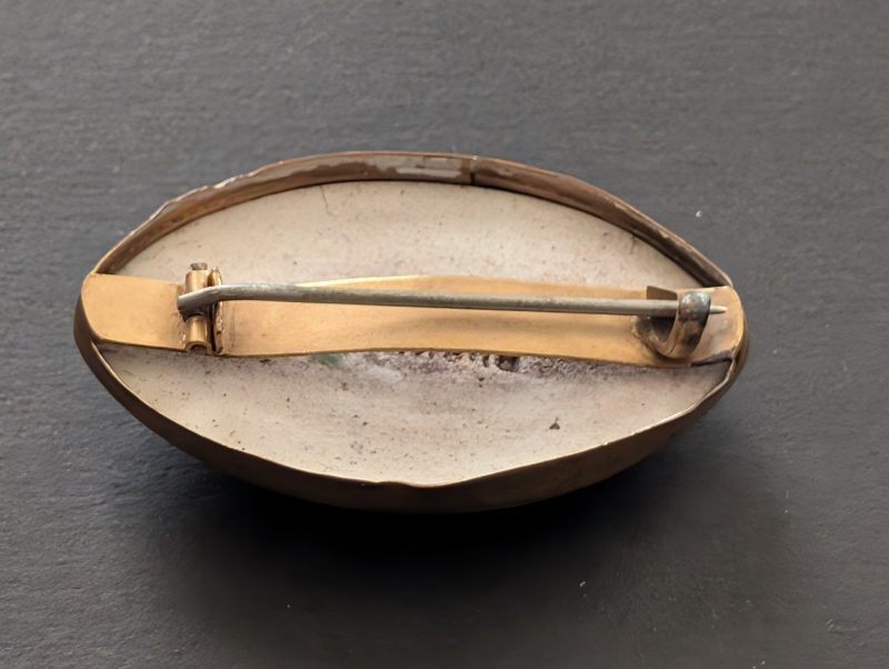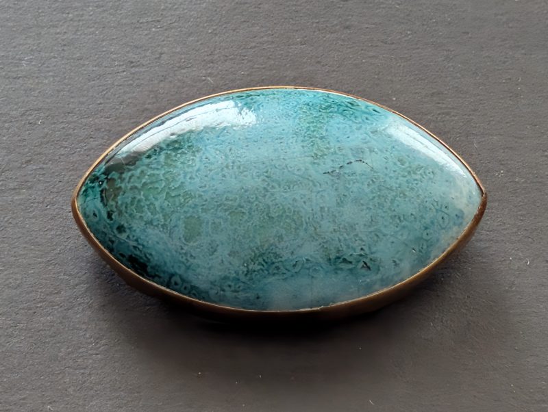 Ruskin blue-green ceramic pin set in gold