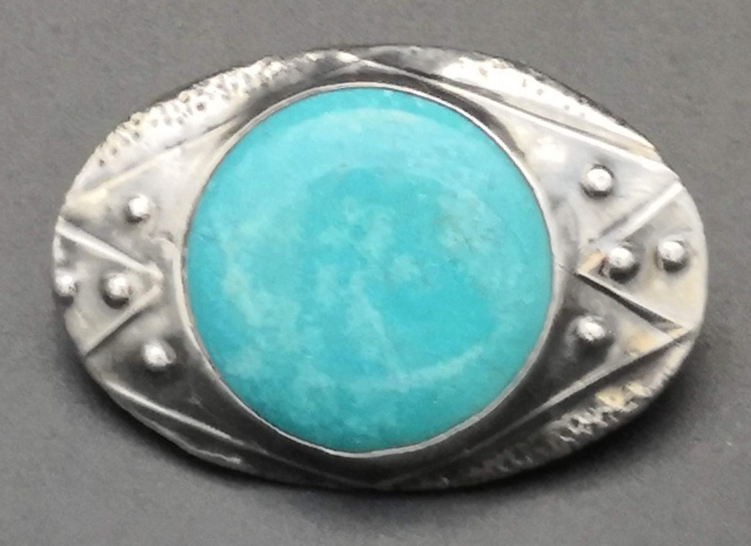 Turquoise pin set in silver